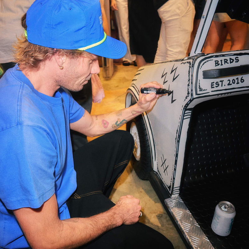Massive thanks to our crew who rallied day and night to bring this location to life - you know who you are, and we couldn’t have done it without you. From the build-out to the final touches, everyone went above and beyond. Our vintage 80s 'Sanctuary Cove OG’ golf buggy got completely pimped into an absolute low rider look and feel, and sits middle store as a complete show stopper. Local artist Lee McConnell, gave it that unmistakable Birds flair with some cartoon line work that makes it pop in all the right places.